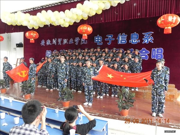 9月28日下午,电子信息系2011级新生“党在我心中”大合唱比赛在5103教室举行。