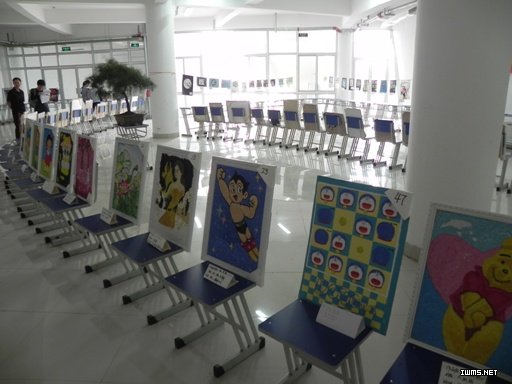 此次比赛展出作品共计130多件,主要分为平面设计和装饰两大类,参展作品题材丰富、形式多样,有服装设计、手绘海报、创意漫画、沥粉画、纸浆画和自制玩偶等,体现了同学们独具特色,不拘一格的创造能力。平时生活中的废纸、塑料瓶、铅笔削、旧衣服等材料在同学们的妙笔、妙手中奇迹般地变成了美观大方、爱不释手的艺术品。