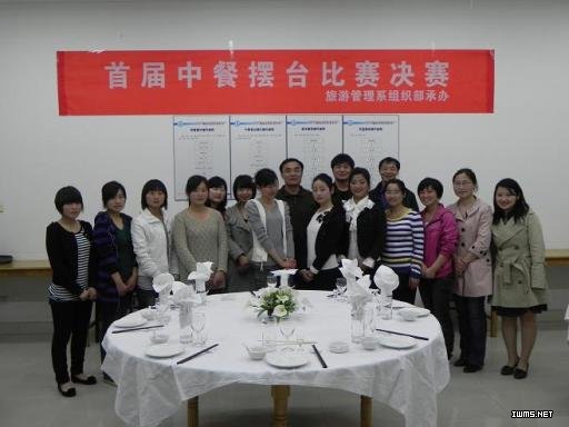 在旅游管理系首届中餐宴会摆台技能竞赛决赛中,酒店0902班李力、酒店0902孙桂超、酒店0901班邱心瑞位列前三。