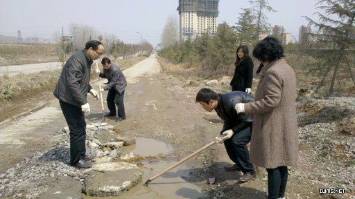 近日,电子信息系的师生注意到学院门前的翡翠路破损严重,给学院的出行车辆及过路的车辆造成了很大的不便。3月23日中午,电子信息系部分师生利用中午休息时间,从后勤借来工具,将两侧辅道的数个大坑进行了填补修整,在辅道上通行的车辆也畅快了许多。