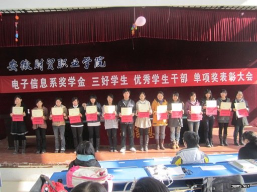 12月22日,电子信息系2009-2010学年度评奖评优表彰大会在5103教室隆重召开,会议表彰了该年度国家奖学金、励志奖学金、学院奖学金的获得者及三好学生、优秀学生干部及单项积极分子。