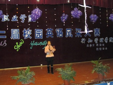 来自全院200多名英语爱好者经过初赛、复赛的层层筛选,10名选手入围决赛。决赛中的即兴讲演、才艺表演和猜词秀三个比赛环节分别考验了参赛选手的英语表达能力、综合素质和应变能力现场,参赛人员以敏捷的反应、准确的发音、流畅的语调、丰富的感情赢得了老师和观众的阵阵掌声。之后,参赛选手还与王勤老师、David老师展开流利的口语交流。比赛丰富同学们的课余文化生活,促进了同学们的英语学习的热情,营造了良好的校园文化氛围。
