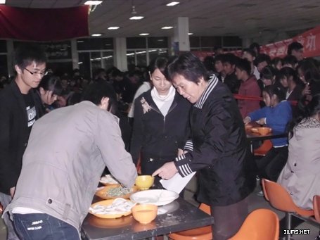 雪岩贸易学院劳动生活部于11月20日晚在食堂二楼举办了第四届包饺子大赛,本届大赛得到了其他各院系的大力支持,党总支书记杨建平现场为选手作指导。