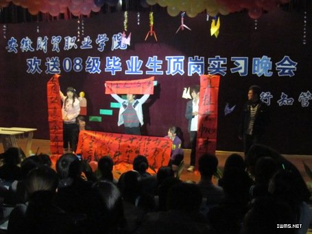 11月12日晚,行知管理学院欢送08级毕业生顶岗实习晚会在5103教室激情上演。
