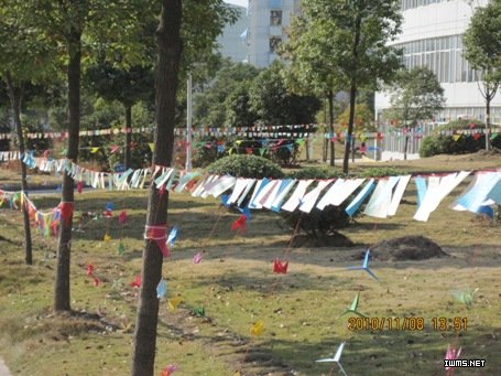 近日,学院教学楼附近一条红色的丝线串起了一张张写满对毕业生祝福的纸片,五颜六色的纸鹤点缀其间,汇集成祝福的海洋,这里是雪岩贸易学院 “祝福一线牵”的活动现场。雪岩贸易学院的学生会倡起了此次活动,得到2009级和2010级同学的积极响应。他们折出思念的纸鹤,挂上祝福的纸条,祝愿所有08级毕业生在以后的学习生活中能够一帆风顺,祝愿学院事业蒸蒸日上。