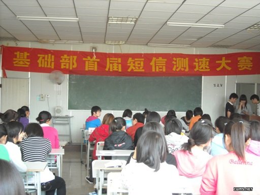 10月21日中午,基础部首届“青春在我 精彩在沃”文明短信输入大赛在0106教室快乐上演。以“倡导文明短信、构建和谐校园”为主题,选手自带手机,在规定时间将规定内容输入手机,从时间控制,文字、标点符号的正确率等方面来评判优胜。活动发起后,同学们表现出很高的兴趣,纷纷报名参赛。比赛产生3名优秀选手,基础部王静主任、张少兵副主任为优秀选手颁发了奖品。