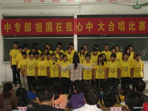 10月13日,中专部在阶梯教室隆重举办了“祖国在我心中”2010级新生大合唱比赛。中专部主任张爱民、副主任宋凌云、副主任徐道根、管委会副主任杨声以及刘文溢、梅章骏等老师应邀观看了比赛并担任比赛评委。