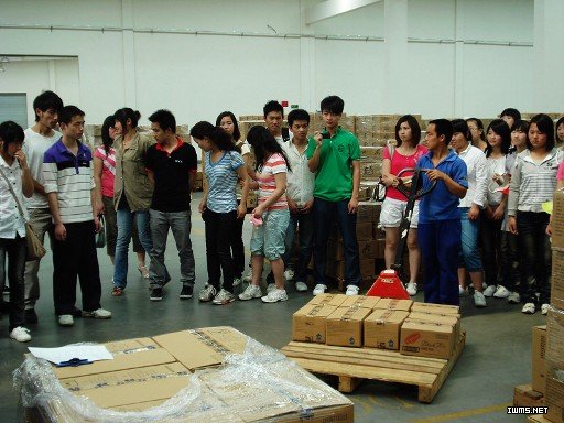在中外运合肥分公司,同学们走进仓库,实地学习了仓储作业区域的划分、堆码、保养方法和仓储机械等知识。该公司罗主任还结合公司的经典作业案例,向同学们仔细讲解了仓储的作业流程。