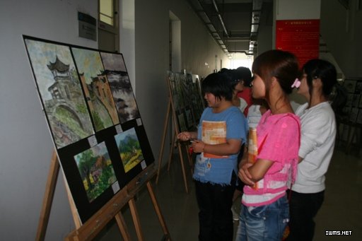 6月2日,电子商务系在实训1楼展厅举办09级艺术类专业婺源风景写生作品汇报展。此次作品展共展出作品1000幅,内容包括水粉、速写、摄影等。