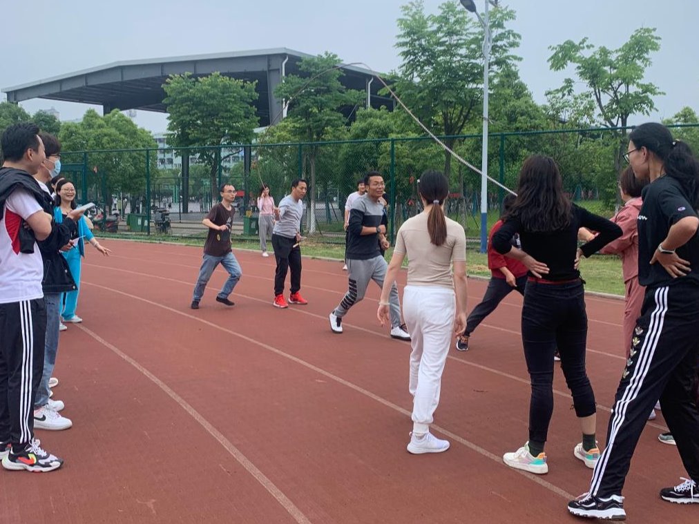 此次比赛分为30秒短绳单摇跳和3分钟10人长绳“8”字跳两个项目。下午2点30分,比赛正式开始,在1个小时的比赛中,每位参赛的教职工脸上都洋溢着灿烂的笑容,诠释了运动与快乐的理念。