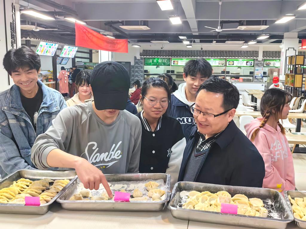 下午两点,师生们准时到达食堂一楼,在统一安排下领取食材和器具。活动现场欢声笑语不断,师生们一起讨论包饺子的技巧,共同交流中华传统美食的制作流程,体悟劳动的无限魅力。