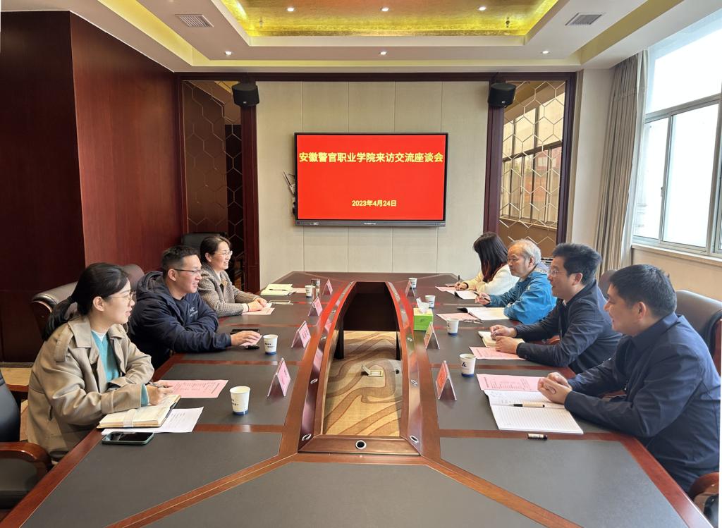 4月24日下午,安徽警官职业学院教务处处长欧元军一行四人来我校调研交流,我校教务处处长王海龙及相关负责同志参加会议,会议由王海龙主持。