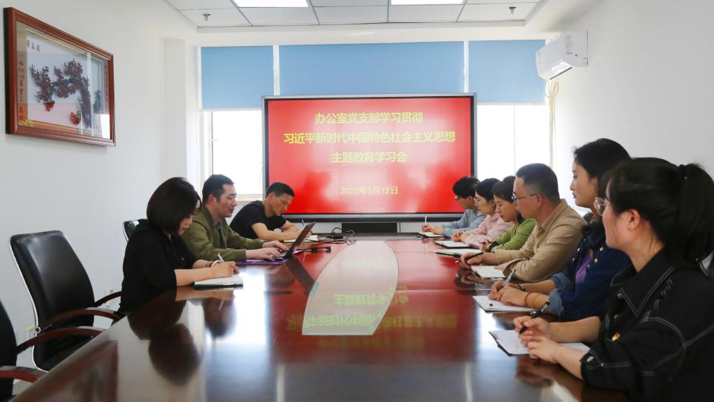 5月12日,办公室党支部书记席曦主持召开学习贯彻习近平新时代中国特色社会主义思想主题教育专题学习研讨会,办公室党支部党员同志参加。