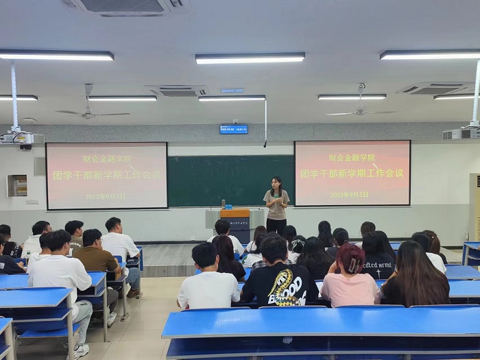 9月3日下午,财会金融学院召开团学干部新学期工作会议,会议由团总支书记沈丽萍主持,全体团总支学生会成员参加。