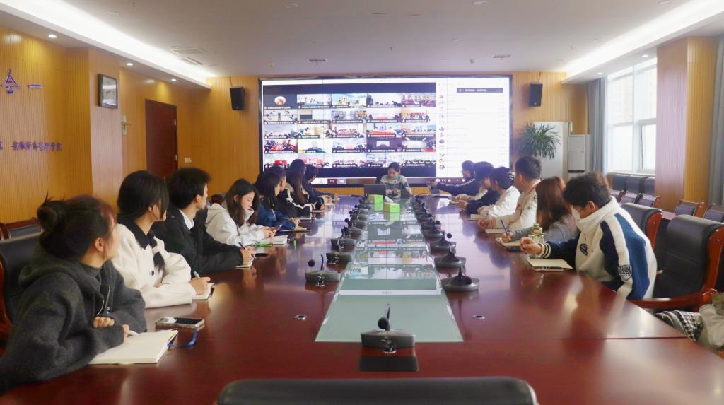 11月15日上午,共青团安徽省委、安徽省学生联合会召开全省学联学生会组织专题会议,会议采取线上线下相结合形式,主会场设在黄山学院,各地市学联和各高校设分会场。团委组织校院两级学生会主席团成员在行政楼204会议室通过视频形式进行观看学习。