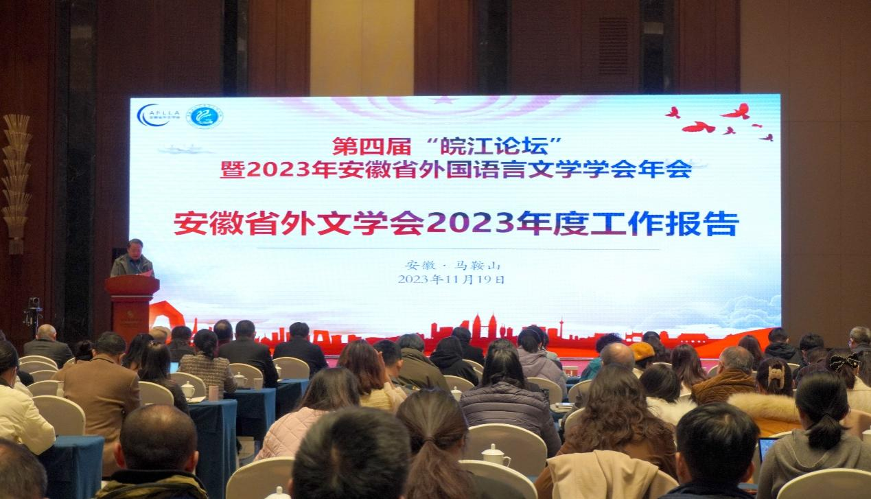 2023年11月17至19日,第四届“皖江论坛”暨2023年安徽省外国语言文学学会年会在马鞍山师范高等专科学校召开。来自省内外各高校外国语教学相关负责人、合作企业单位代表、省内外社会组织负责人、教师代表以及省外文学会会员等310余人参加了本次年会。我校公共教学部谢峰老师参加了会议。