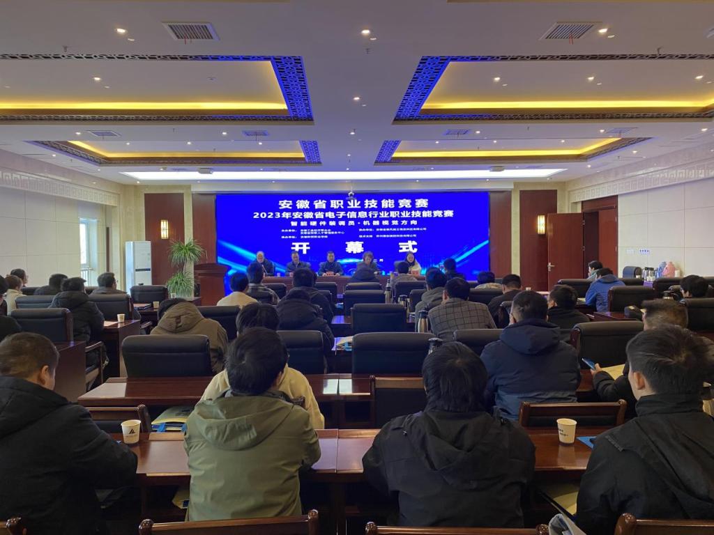 12月2至3日,2023年职业技能竞赛电子信息行业职业技能竞赛智能硬件装调员赛项在安徽财贸职业学院翡翠校区成功举办。安徽省技能人才管理服务中心副主任张维明、安徽工业经济联合会秘书长缪静林、马鞍山学院智造工程学院副院长陈华、安徽财贸职业学院教务处处长王海龙、信息工程学院院长张成叔以及40余名参赛师生参加开幕式。开幕式由信息工程学院院长张成叔主持。