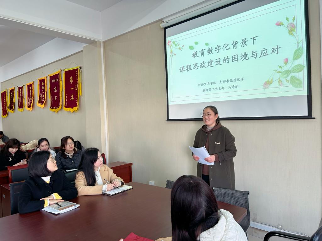 12月6日下午,经济贸易学院党总支在综合楼212办公室开展支部书记讲党课活动,本次党课由教师第二党支部书记马诗琴主讲,学院全体老师参加会议。