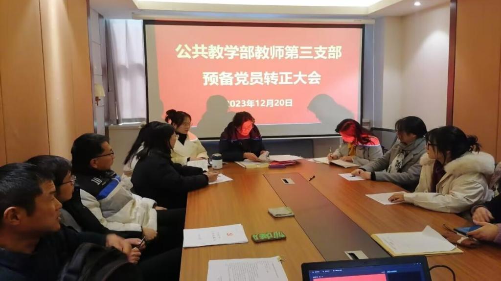 12月20日下午,教师第三党支部在行政楼704召开全体党员大会,讨论赵倩、方亚儒、马林霜三位同志预备党员转正事宜。支部书记马凌云主持会议,全体党员参加会议。三位预备党员的入党培养人及党总支宣传委员朱亚伟一同参加会议。