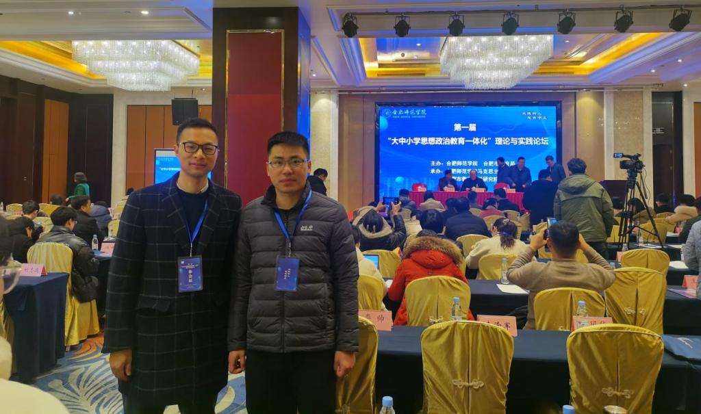 近日,第一届“大中小学思想政治教育一体化”理论与实践论坛在合肥举行,论坛由合肥师范学院、合肥市教育局主办,合肥师范学院马克思主义学院和合肥教育科学研究院承办。我校作为“省级大中小学思政课一体化共同体”项目立项参建单位,委派刘先锐和储锐老师参加本次论坛。