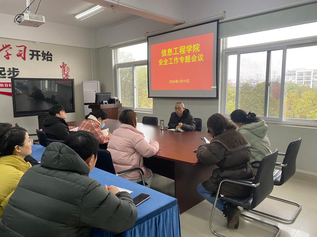 1月19日上午,信息工程学院在综合楼313室召开安全工作专题会议,会议由信息工程学院党总支书记邓庆安主持,全体行政管理人员参加会议。
