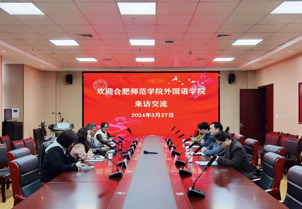 3月26日下午,合肥师范学院外国语学院副院长吴礼敬、商务英语系主任史以一等一行到访公共教学部开展专业建设交流工作。公共教学部党总支书记张克,副主任陈伟,外语教研室商务英语专业教师参加交流座谈。