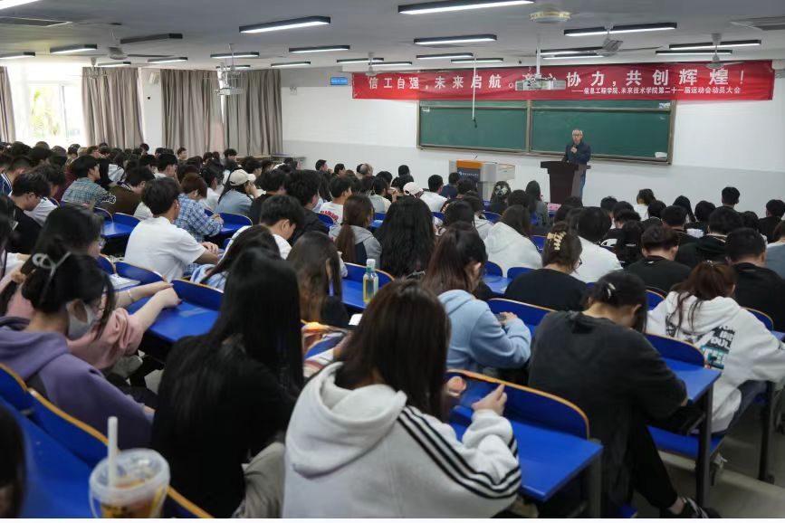 4月18日,信息工程学院和未来技术学院在6103教室召开第二十一届校田径运动会动员大会。两个学院的领导班子成员和全体运动员、全体服务团队成员参加会议。