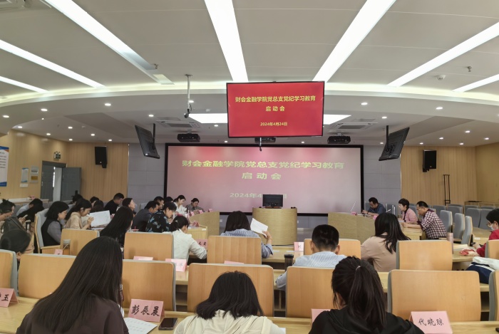 4月24日下午,财会金融学院党总支在A502实训室召开党纪学习教育启动部署会。党总支书记胡宏萱主持会议,全体党员参加会议。