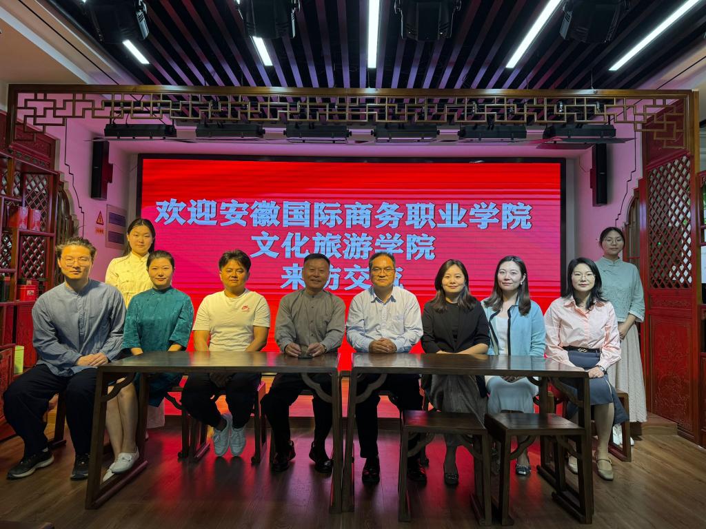 4月26日上午,安徽国际商务职业学院文化旅游学院院长王祥武一行到访文化创意学院开展实训室建设交流工作。文化创意学院院长郭湘如、骨干教师魏洋、实训秘书许斌接待来访成员。