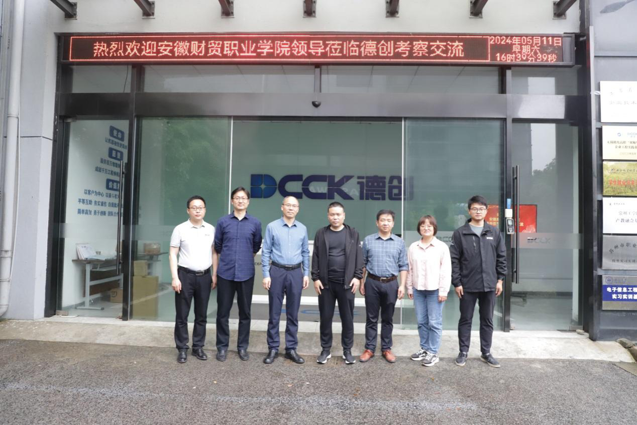 在苏州德创测控科技有限公司,总经理葛大伟(安徽财贸职业学院产业教授)介绍了德创工业视觉评估实验室、视觉核心配件展厅及工业视觉系统运维员鉴定室、机器视觉教学设备展示厅。在座谈会上,张成叔介绍了未来技术学院相关专业课程标准、人才培养、学科建设、学生就业指导等方面内容,双方就校企合作模式、联合申报课题、科技成果转化等方面进行了深入探讨和交流,并表示将进一步加强沟通和合作,为人才发展作出更大贡献。
