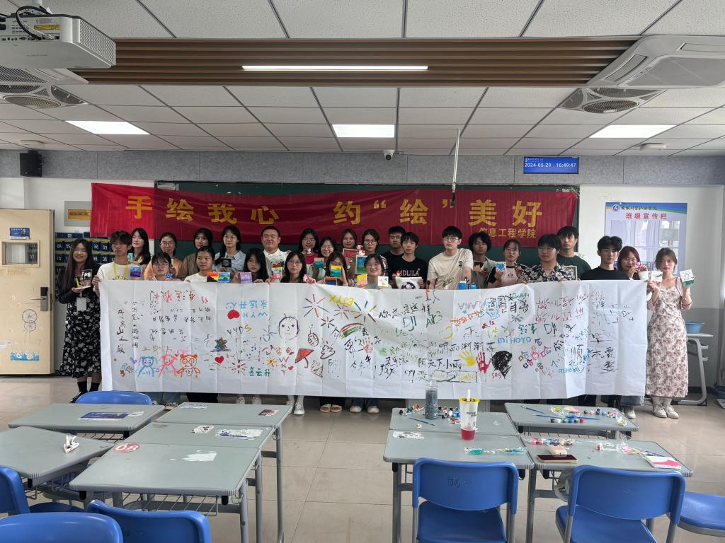 为推动我校心理健康事业发展,培养和引导在校大学生善于表达自我、关爱自我,促进大学生关注心理健康。5月29日下午,信息工程学院在4602教室举办了“手绘我心,约‘绘’美好”心理涂鸦活动。