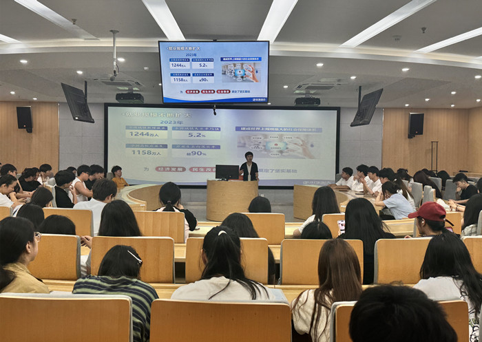 胡宏萱以《当前就业形势与实施就业优先战略》为题,从就业总体形势、就业压力分析、确保就业优先、拓宽就业渠道等四个维度,围绕就业形势、就业结构、就业难题、就业政策、就业能力等方面作详细阐述,帮助即将走向社会实习就业的同学们找准就业定位、稳定就业心态、把握就业机遇,激励他们增强就业信心,强化专业技能,提升实践水平,引导同学们树立正确的就业观,走向基层,历练中见成长。