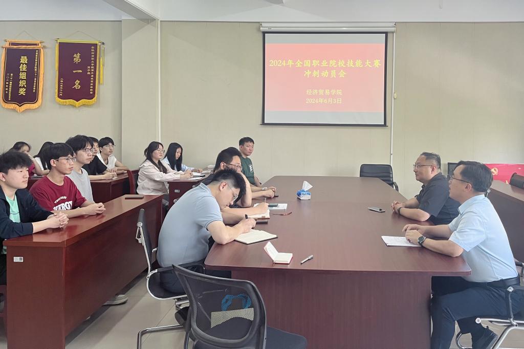 6月3日下午,经济贸易学院在综合楼212室召开2024年全国职业技能大赛冲刺动员会。经济贸易学院党总支书记刘大俊、大赛指导老师以及参赛队员出席会议,会议由经济贸易学院副院长曹宝亚主持。
