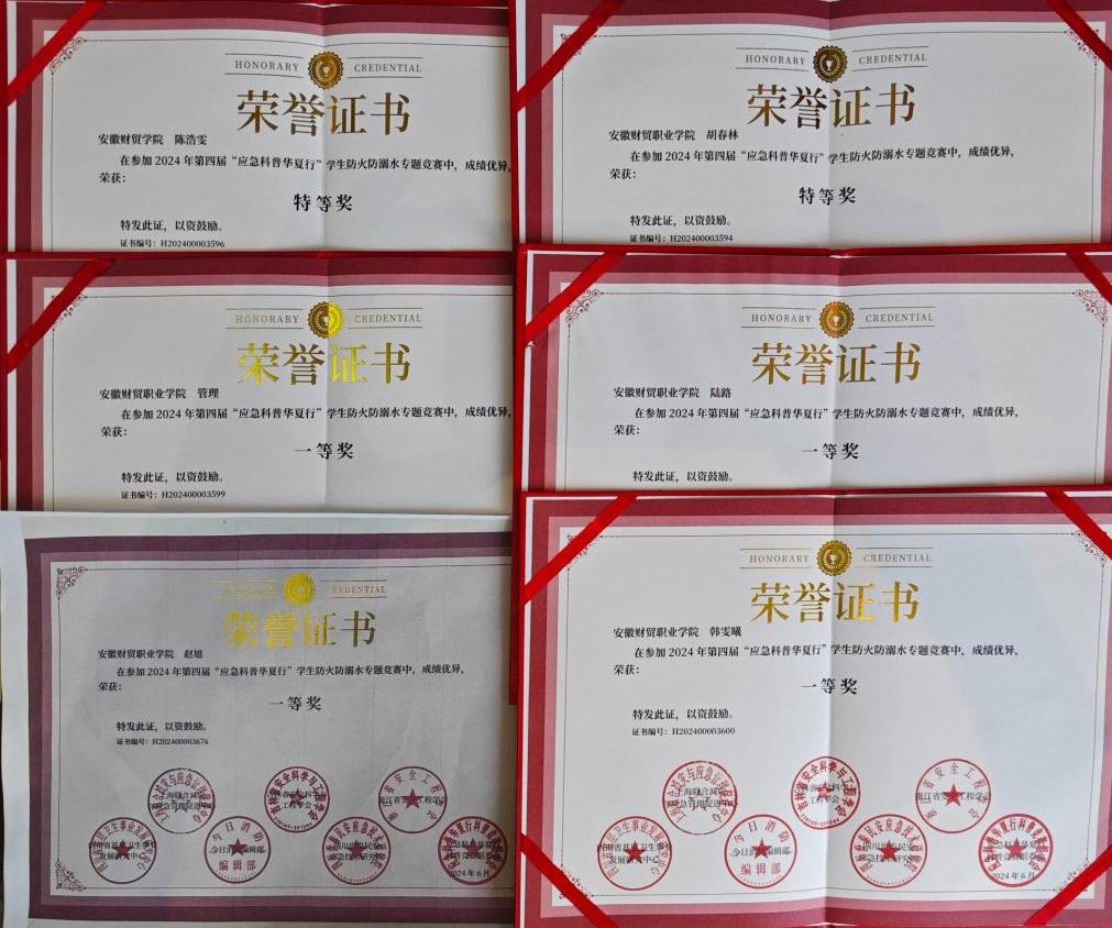 今年6月是第23个全国“安全生产月”,为全面贯彻落实《健康中国2030规划纲要》相关要求,加强校园安全教育,公共教学部组织学生参加2024年第四届“应急科普华夏行”大学生防火防溺水专题竞赛。经过角逐,最终商英2302班陈浩雯、运动2301班胡春林荣获特等奖,食品2302班管理、商英2303班陆路、幼管2301班韩雯曦、造价2205班赵旭荣获一等奖。