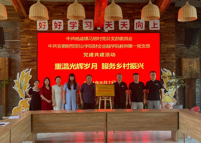 8月7日,财会金融学院教师第一党支部赴长丰县杨庙镇马郢村开展“重温光辉岁月,服务乡村振兴”为主题的党建共建活动。财会金融学院教师第一党支部书记李麟及支部党员教师、马郢村党支部书记钟宇及村委班子成员参加共建活动。