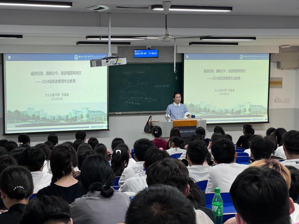 9月9日,文化创意学院旅游管理教研室分别在6102教室和A1003实训室举办2024级旅游管理专业新生专业教育,帮助同学们尽快建立对专业及未来面向的文旅产业的认知。
