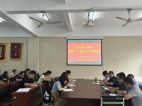 9月中旬,经济贸易学院党总支组织开展学习贯彻党的二十届三中全会精神学习会。会议由党总支书记刘大俊主持,全体党员参加。