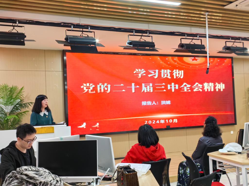 洪妮从会议背景、核心内容、主题主线以及大会提出的新思想、新观点、新论断等方面,对党的二十届三中全会的精神要义和重要内容进行了深刻解读。她结合学习习近平总书记在党的二十届三中全会上的重要讲话精神和《中共中央关于进一步全面深化改革、推进中国式现代化的决定》文本,分享学习体会。