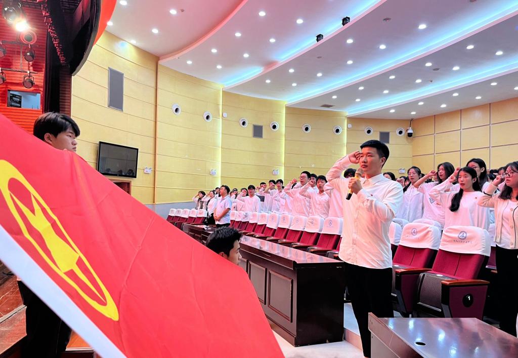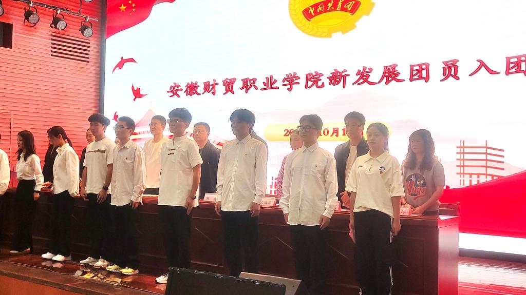 为深入贯彻落实习近平总书记关于青年工作的重要思想,强化共青团仪式教育,为新发展团员上好“入团第一课”,10月10日中午,安徽财贸职业学院在学校报告厅举行2023-2024学年度第二学期新团员入团仪式,学生处处长廖步岩、校团委副书记刘成、学生发展中心主任、各二级院部团总支书记、团干以及校学生会团委、二级院部主席团成员与学生兼职副书记等参加会议。