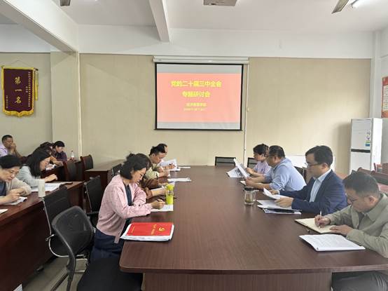 10月16日下午,经济贸易学院党总支组织召开学习贯彻党的二十届三中全会精神专题研讨会。会议由党总支书记刘大俊主持,全体党员参加。