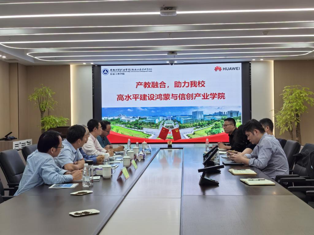 在合肥卓瑞信息技术有限公司,校企双方回顾了前期成功的合作案例,并期待后续能在学生就业、实训室建设、人才培养等方面进行合作。信息工程学院一行人还与华为安徽公司代表进行了接洽,三方就合作建设鸿蒙与信创产业学院进行了初步探讨,并表示将进一步进行沟通,争取早日达成合作。(供稿:孙成正 审稿:濮光宁)