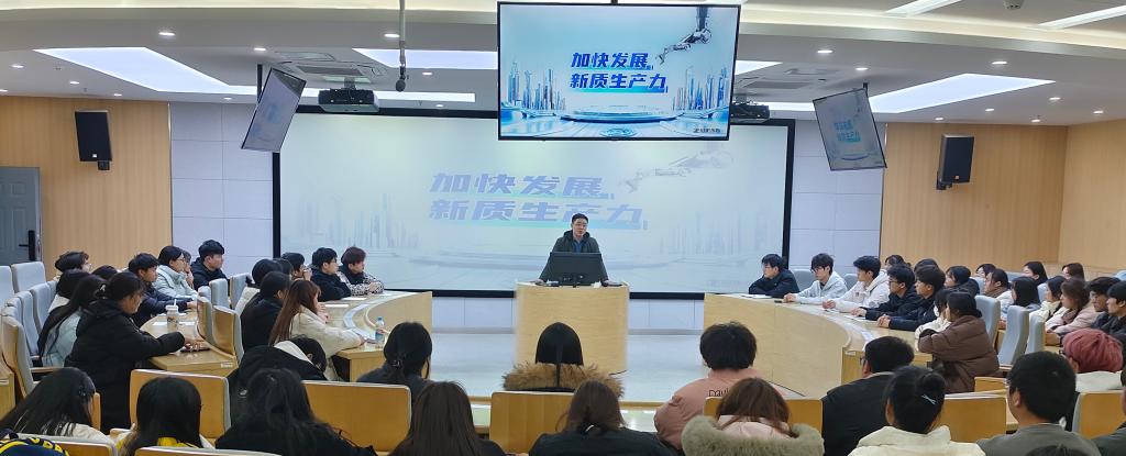 张伟伟以《加快发展新质生产力》为题,从新质生产力发展的现实必要性、新质生产力的建设内涵以及新质生产力的实现路径,向同学们阐明了新时代坚持和发展新质生产力是高质量发展的内在要求和实现经济现代化的必然要求。更高素质的劳动者是新质生产力的第一要素,张伟伟勉励在座的青年学生要志存高远,夯实专业学习基础,提升专业技能,以适应新一轮科技革命和产业变革的战略选择,为打造中国经济发展的新动能和新优势贡献青春力量。