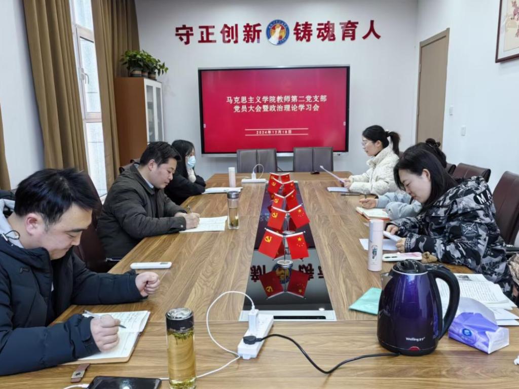 12月18日下午,马克思主义学院各教师党支部组织召开政治理论学习会,全体党员参与。