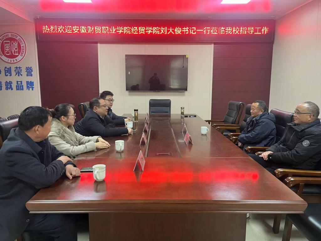 1月3日上午,经济贸易学院党总支书记刘大俊率队前往太湖县职业技术学校、恺丰职业技术学校和当代职业技术学校,与这三所学校洽谈合作办学事宜。太湖县职业技术学校校长周玲、恺丰职业技术学校校长余群峰以及当代职业技术学校校长陶军生分别代表各自学校热情接待了我校一行。