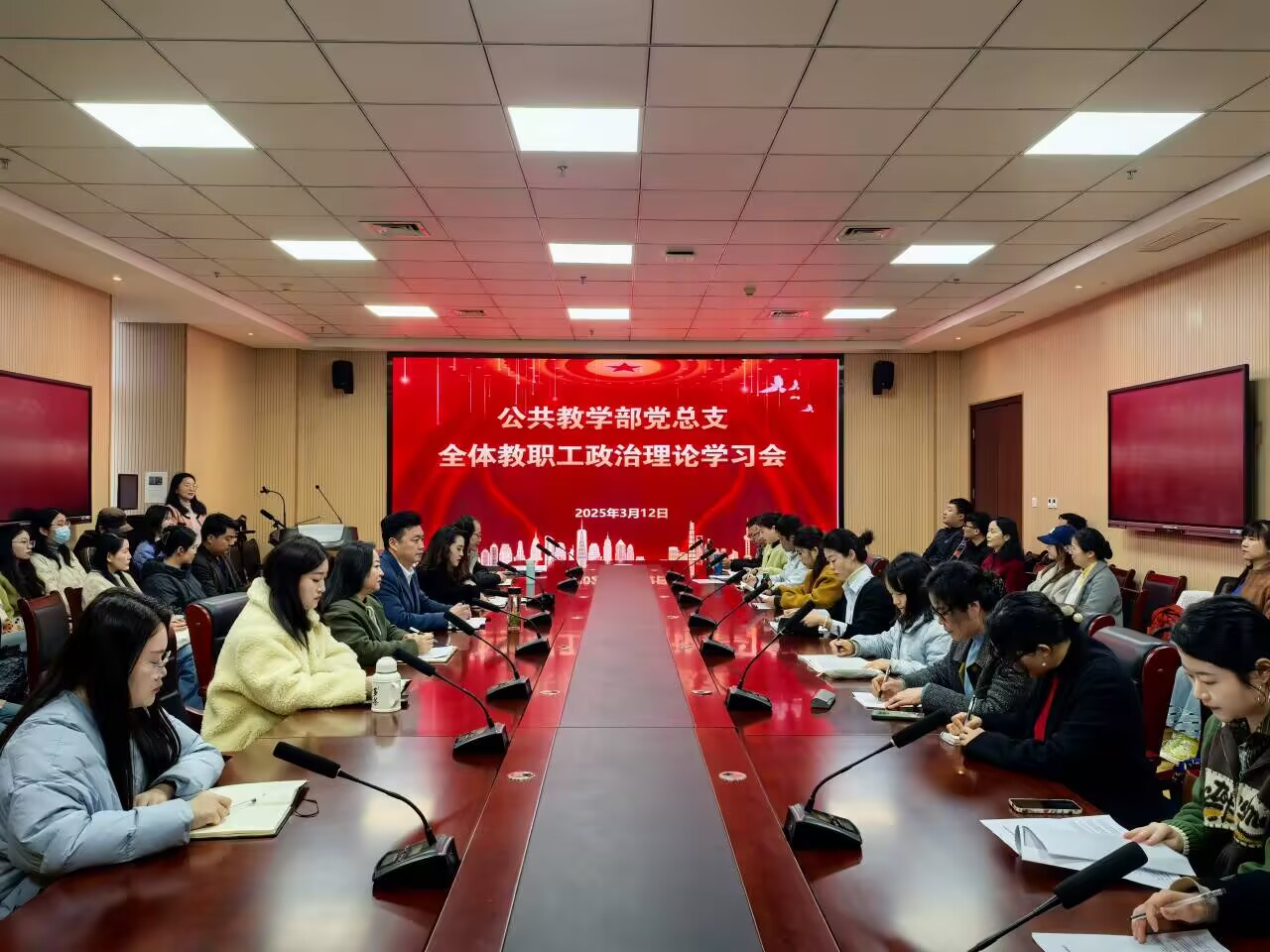 3月12日,公共教学部党总支在308会议室召开政治理论学习会。公共教学部全体教职工参加了此次学习会。