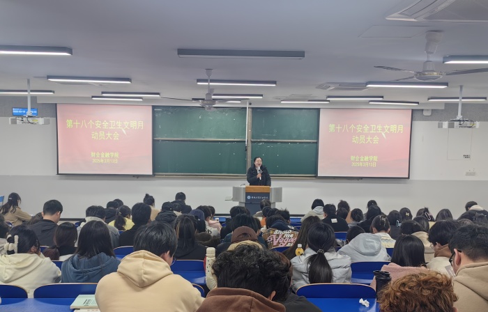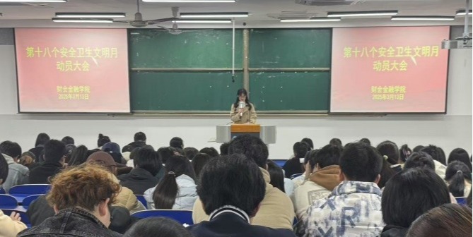3月13日,财会金融学院召开第十八个安全卫生文明月动员大会,党总支书记胡宏萱、副书记左艳琼、学生管理干事,大一大二班级辅导员老师、学生干部和寝室长代表参加会议,会议由团总支书记沈丽萍主持。