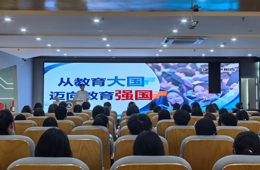 6月11日下午,文化创意学院党总支副书记倪晶晶走进思政课堂,为青年学子讲授题为《从教育大国迈向教育强国》的形势与政策专题报告。入党积极分子、23级团学干部、新发展团员等100余人参加报告会。