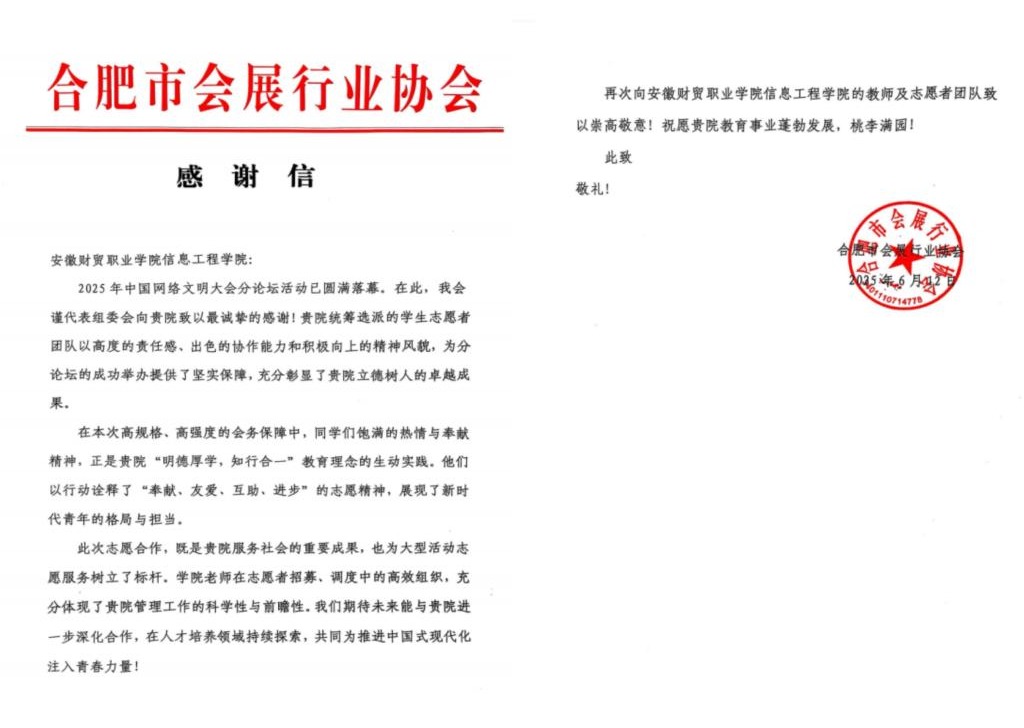 志愿者团队以高度的责任感、出色的协作能力和积极向上的精神风貌,为分论坛的成功举办提供了坚实保障,充分彰显了学院立德树人的卓越成果。志愿服务工作也受到了合肥市会展行业协会的高度赞扬和评价。