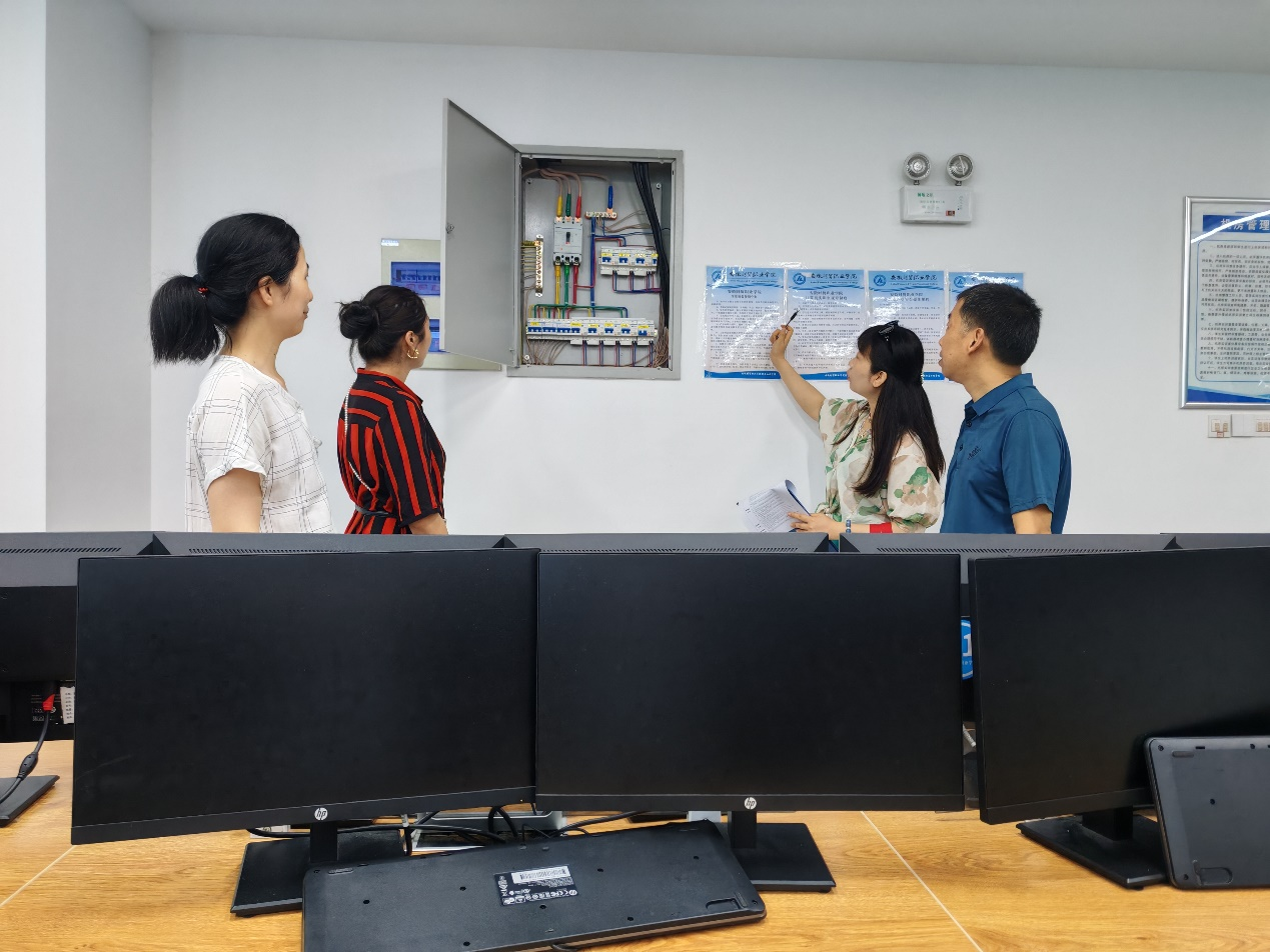 7月4日上午,信息工程学院在党总支副书记丁蓉、副院长耿家礼的带领下,对8间实训室及7间大赛集训室开展安全专项检查。