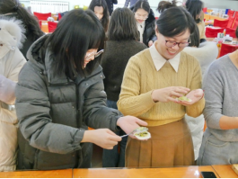 大家欢聚一堂,包饺子话家常,每个人脸上都洋溢着灿烂的笑容,在欢乐、温馨的气氛中大显身手。托住饺子皮、取一勺饺子馅、捏好饺子皮,圆形、月牙形、花边形的饺子跃然手上,在岁末之际共享温情时光。